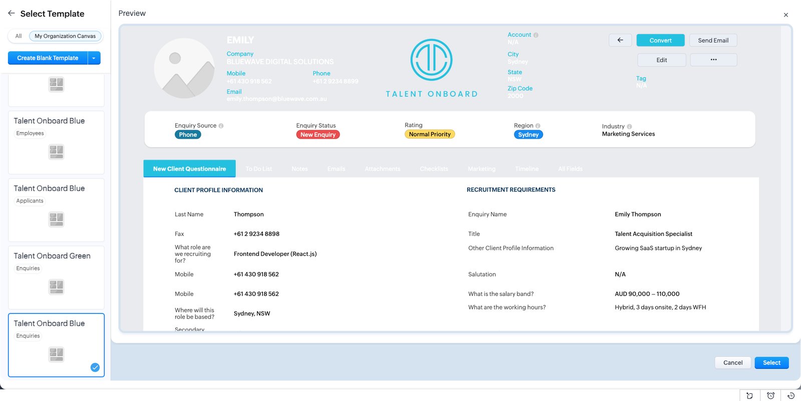 The Applicants module in Talent Onboard gives you a complete view of every candidate in your recruitment pipeline. From initial application through to interview, offer, and onboarding, it allows you to track progress, store documents, and manage ...