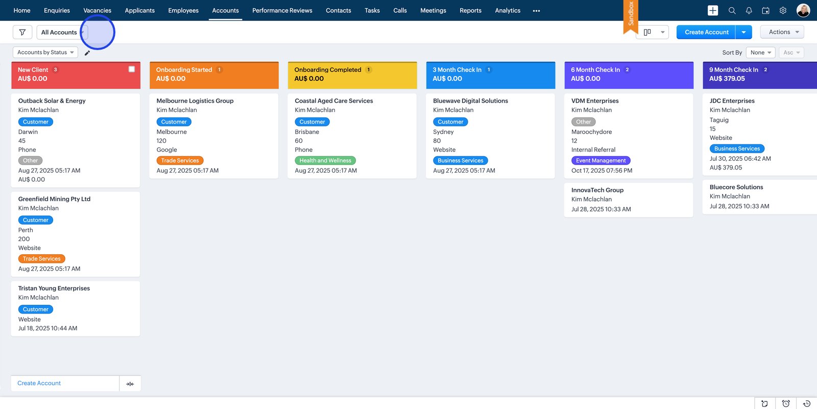 The Accounts module in Talent Onboard helps you manage all your company and client records in one central location. Whether you’re tracking the organisations you recruit for or managing internal departments, Accounts keeps key details — such as ...